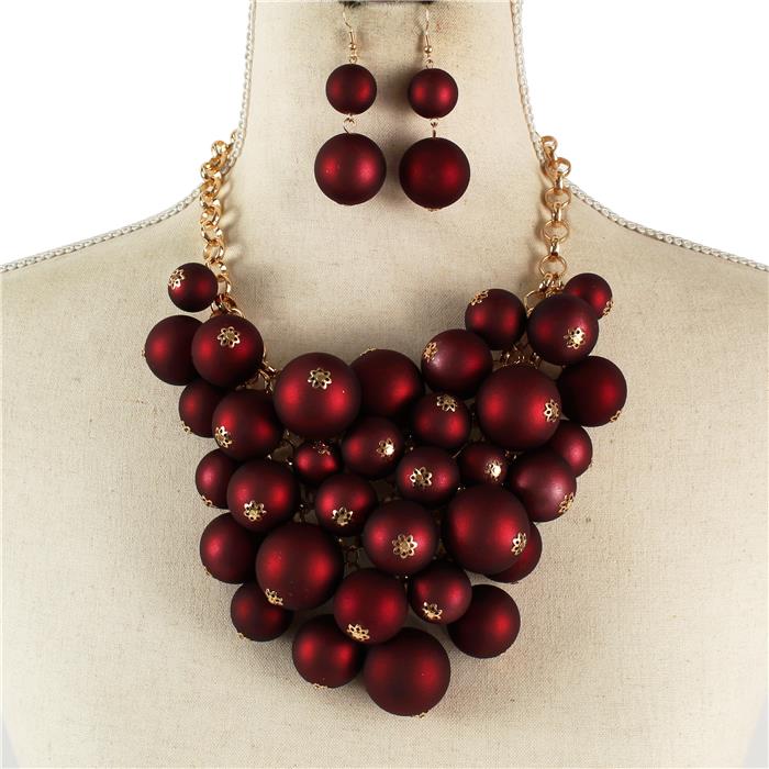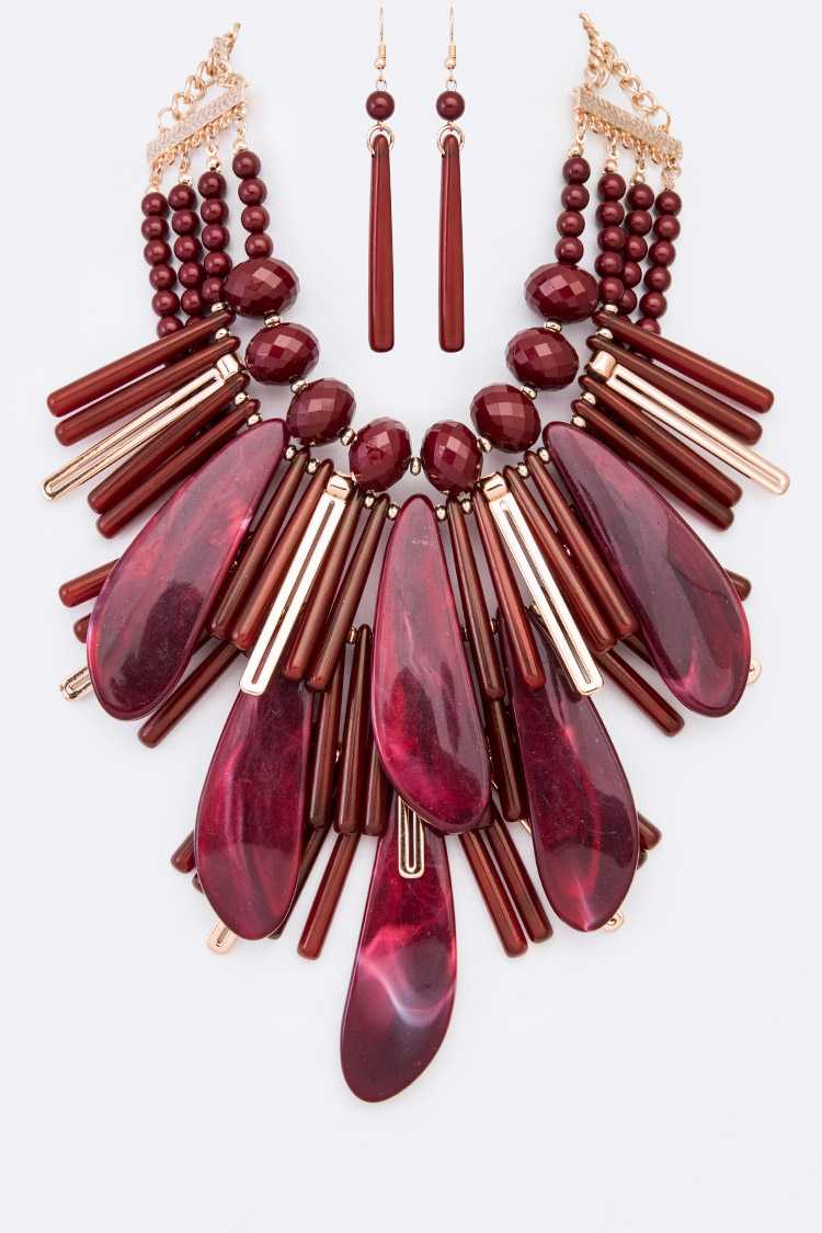 "Ivy" Fashion Burgundy Statement Necklace Set (Burgundy)