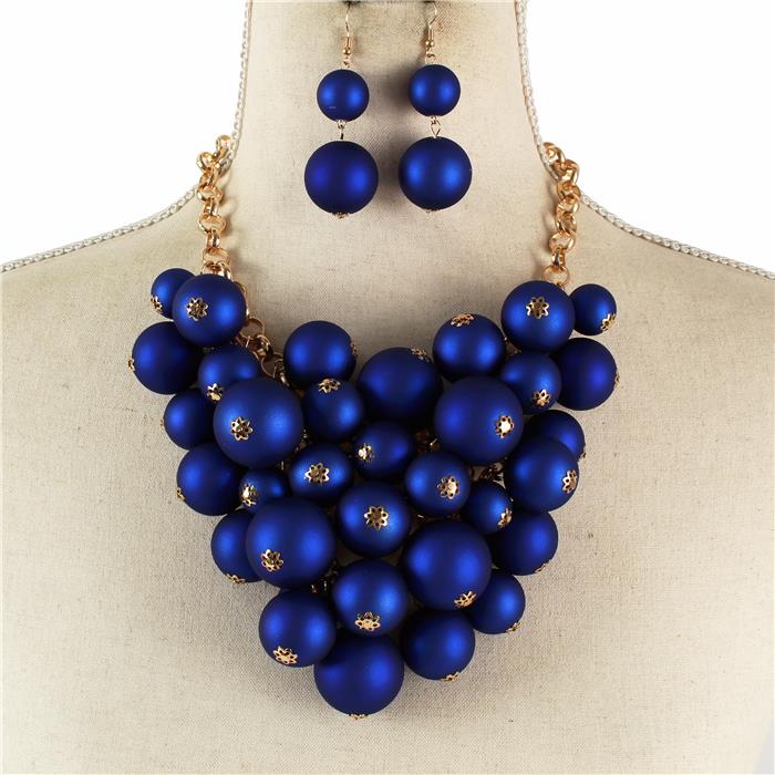 Indulge in sophistication with the "Monica" Blue Cluster Statement Necklace Set. This luxurious ensemble includes a chunky necklace and matching earrings, both featuring a lustrous satin finish for a touch of elegance.