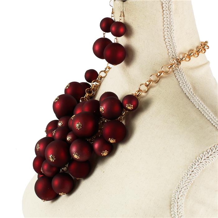 Indulge in sophistication with the "Monica" Burgundy Cluster Necklace Set. This luxurious ensemble includes a chunky necklace and matching earrings, both featuring a lustrous satin finish for a touch of elegance.
