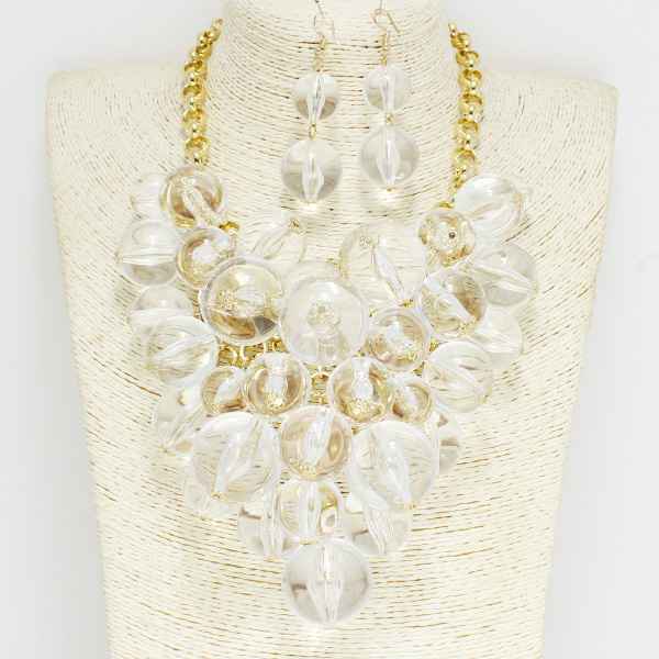 Experience the captivating beauty of our "Monica" Clear Chunky Necklace Set, featuring a stunning acrylic ball necklace and matching earrings. Elevate your look with this must-have accessory that will add a touch of elegance to any outfit.