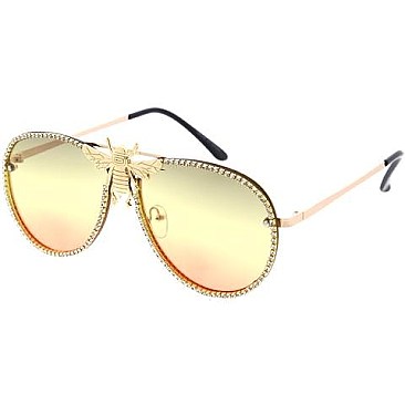 Aviator Bee Accent Gradient Sunglasses (Ombre Gold)