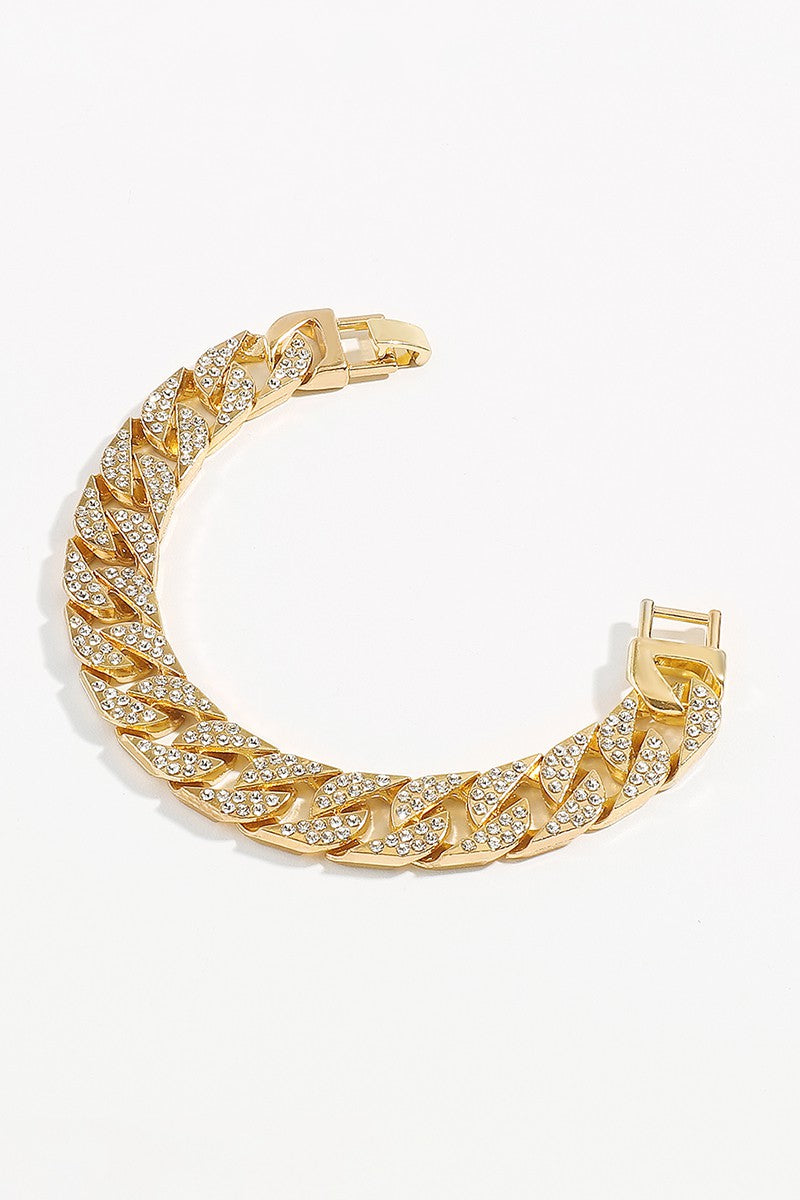 Cuban Rhinestone Chunky Chain Bracelet (Gold)