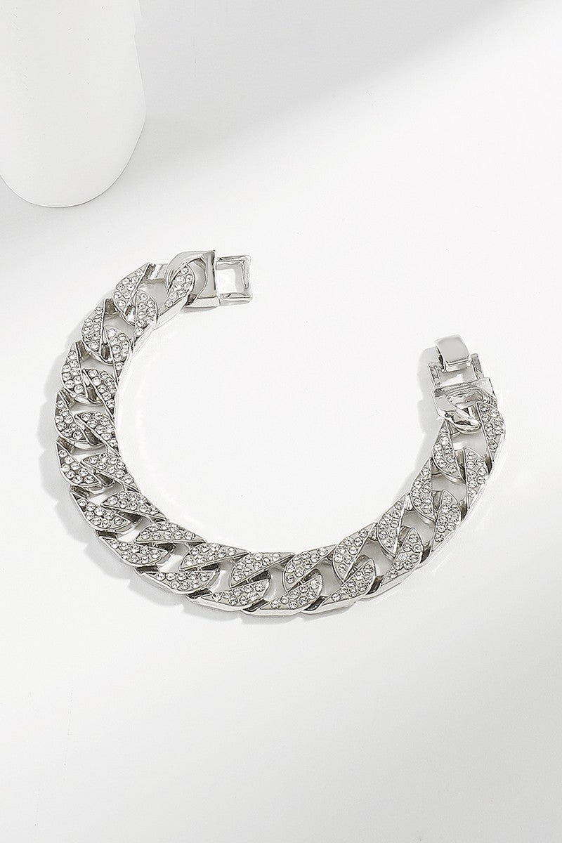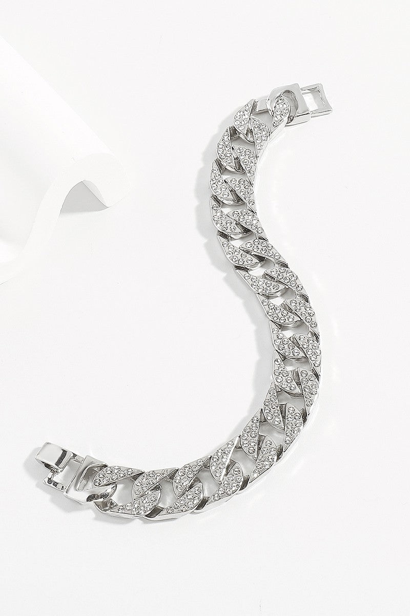 Cuban Rhinestone Chunky Chain Bracelet (Silver)