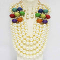 "Gina" Pearl Statement Necklace with multi-color bead accent and matching bracelet