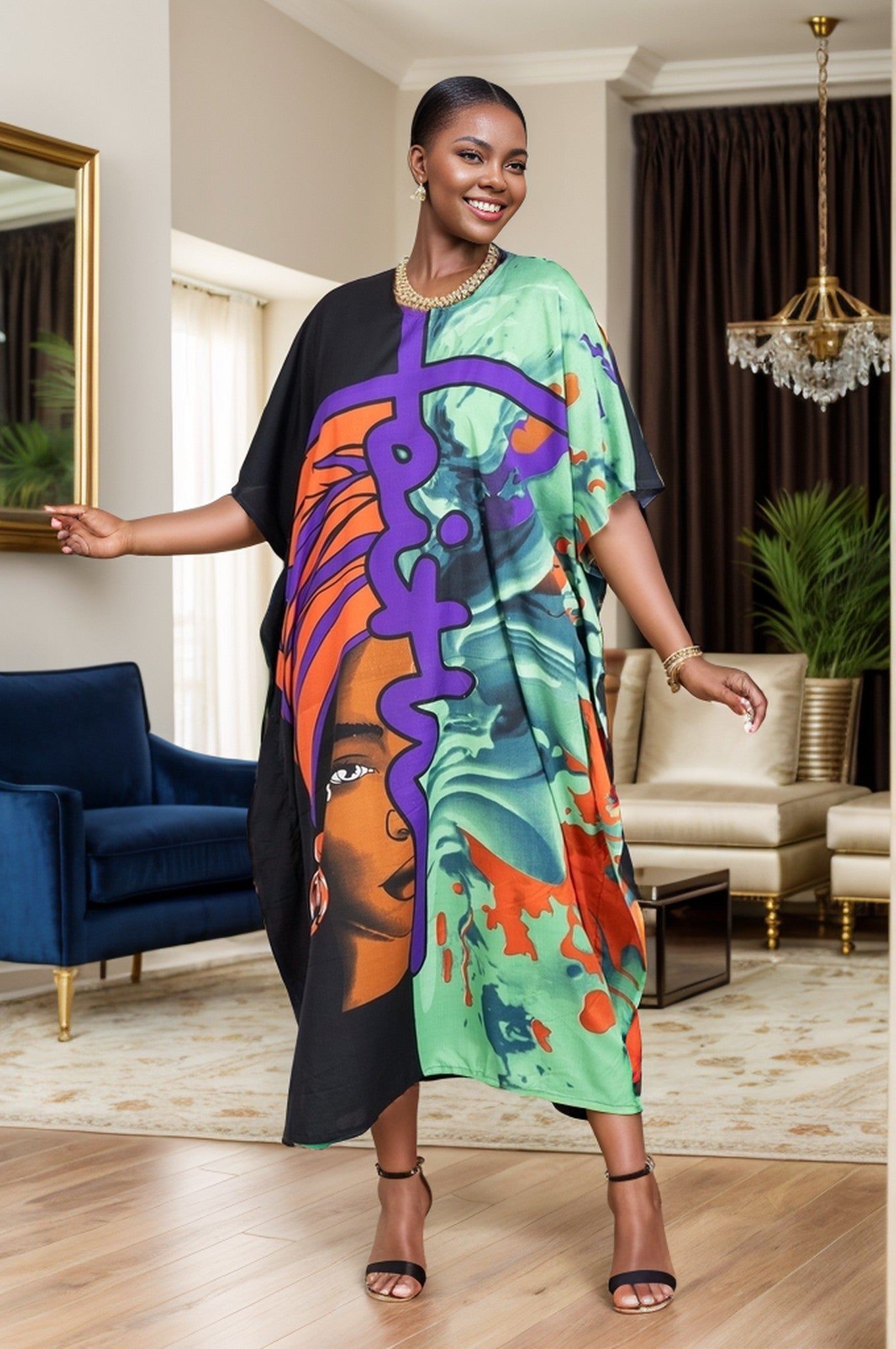 This Kaftan Maxi dress is handmade with a digital print, the dress is
