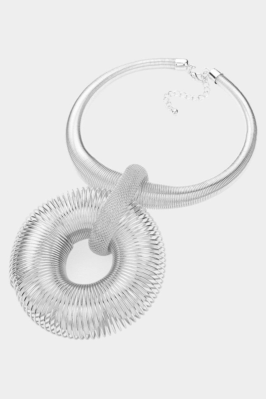 "Paula" Pearl Metal Wire Statement Necklace (Silver)
