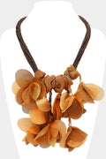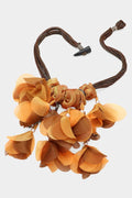 Pearl Beaded Fabric Flower Petal Necklace (Brown)