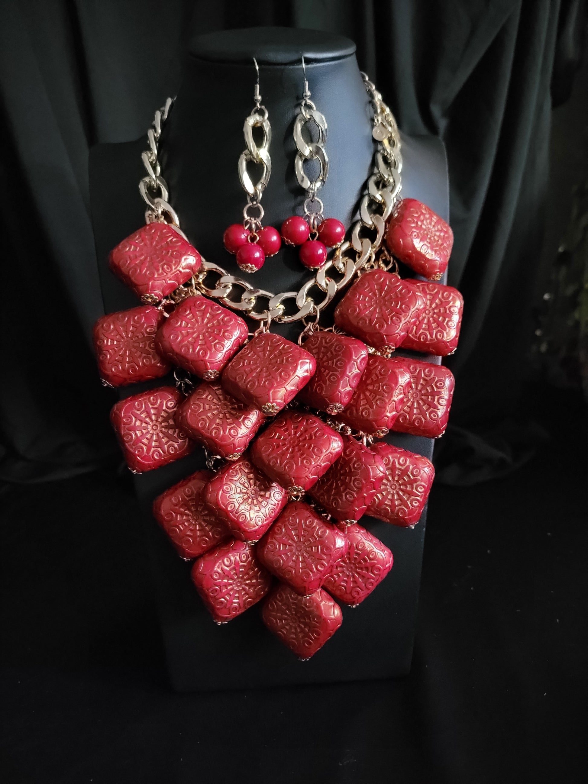 "Ruby" Red/Gold Statement Necklace