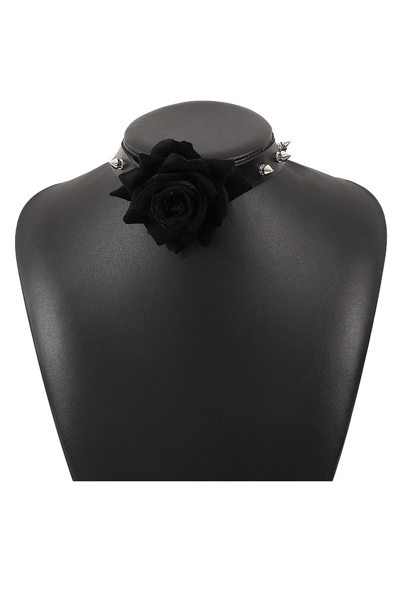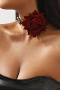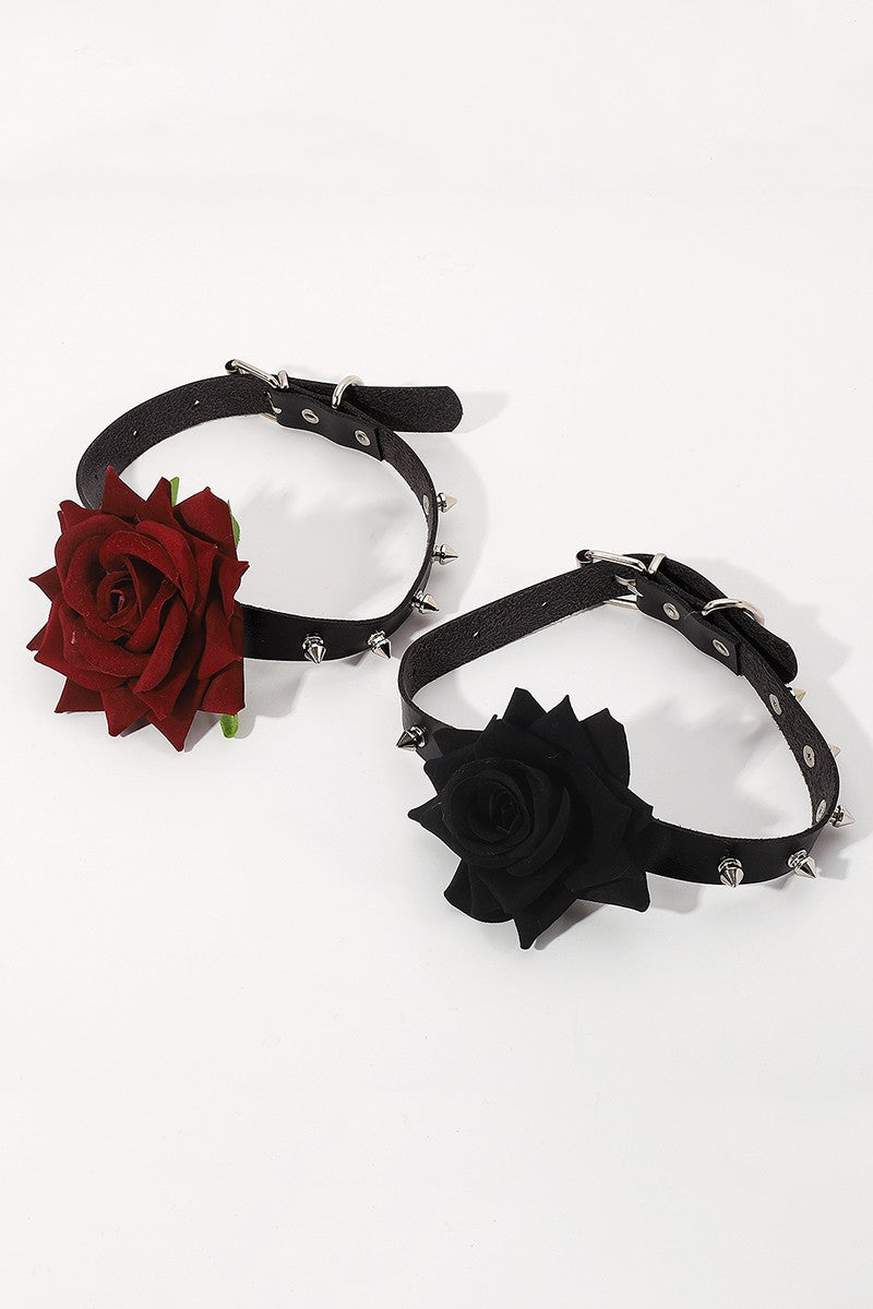 Color: Black or Red Style: Rose Choker Necklace Clasps: Adjustable Belt Buckle Necklace Length: 17.7" Material: Alloy, PU Leather, Polyester