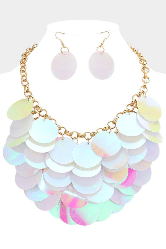 "Tasha" Sequin Disc Statement Necklace (AB)