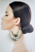 Unleash your daring side with our Silver Ridged Texture 3D Hoop Earrings. These hoops add an edgy touch to any outfit with their bold, ridged design.