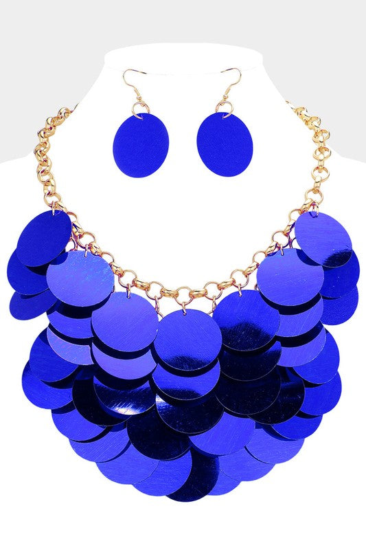 "Tasha" Sequin Disc Statement Necklace (Blue)