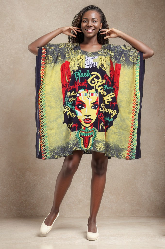 Women's Short African Cover Up Kaftan (Yellow)